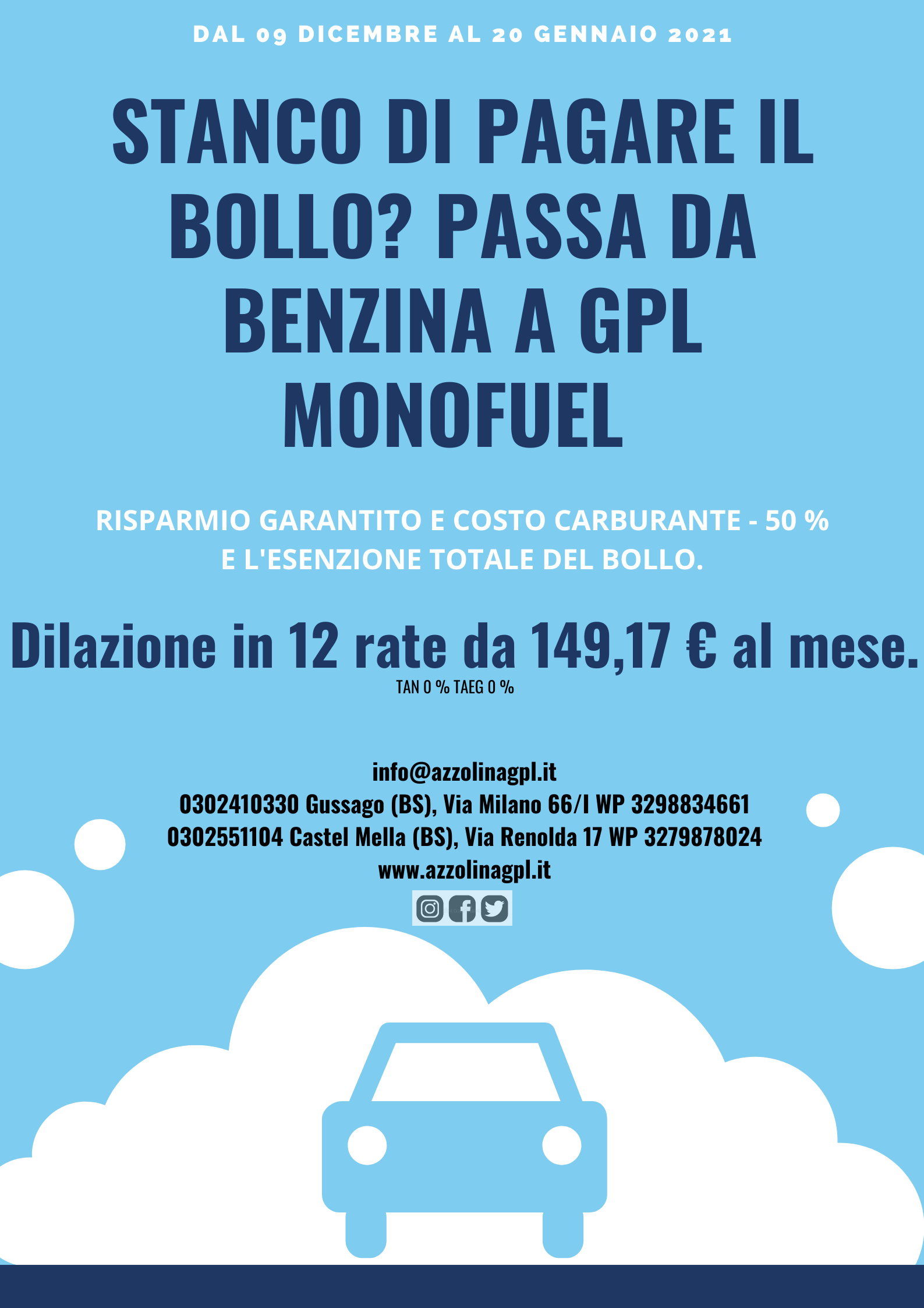 Sei stanco di pagare il Bollo ? Passa da Benzina a Gpl Monofuel : un risparmio garantito e costo carburante -50 % oltre all'esenzione t...